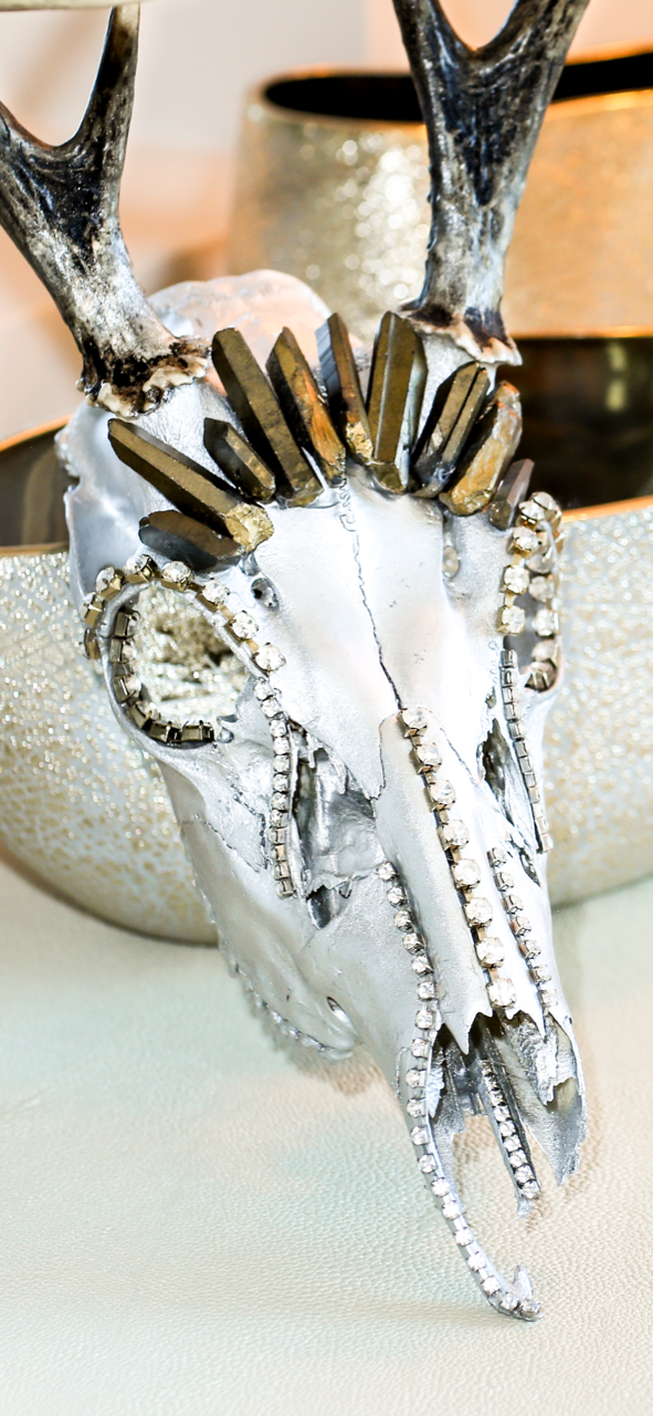 Allison has lived all over the world and creates each unique piece to reflect the specific qualities of each of the animals’ homes. All of the skulls are acquired from farms, hunting, and also from tagged hunts in Africa. Each piece is one of a kind, handcrafted and original.